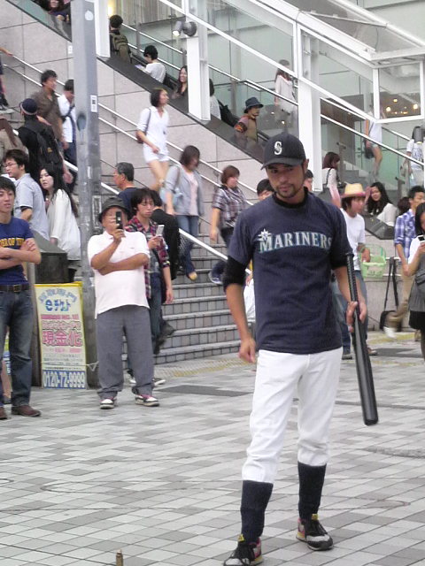 境内の方で人だかりができていたので行ってみると、肩を組んで歌っている若者たちが